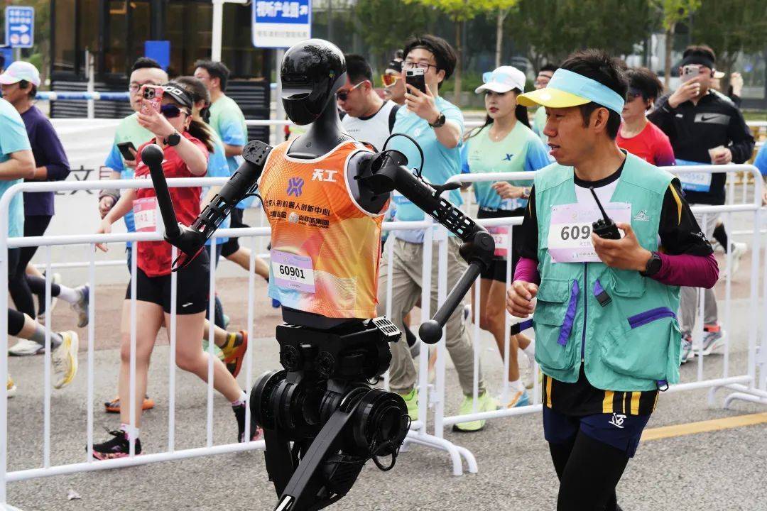 比如本次机器人半马夺冠的北京人形机器人创新中心的“天工机器人”,它能以每小时 6 公里的速度奔跑,冲刺速度最大能达到每小时 12 公里,同时还能应对上下台阶以及崎岖的路面。