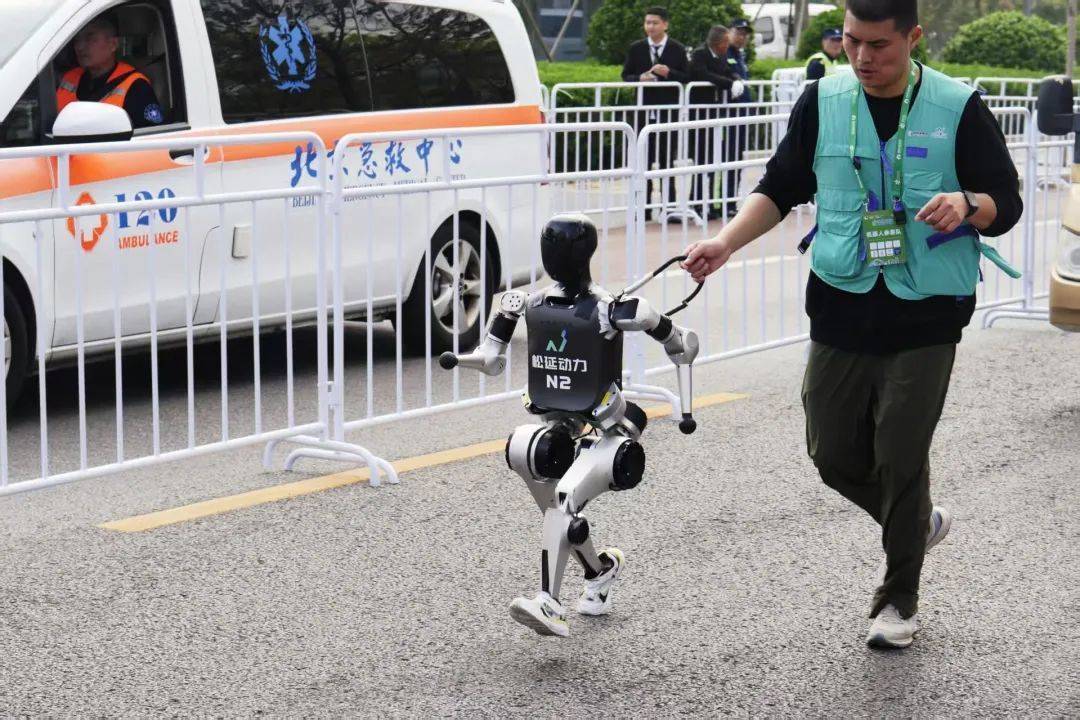 松延动力的 N2 个头小一些,只有 1.2 米高,但它同样有着高超的运动能力,除了跑步,还能原地后空翻。